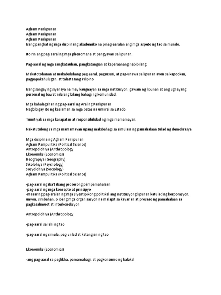 Bakit dapat itong pag-aralan at matutunan ng bawat tao. Pamamahala ng negosyo B. Ang agham Panlipunan ay isang sangay ng kaalaman kung saan pinag-aaralan ang mga pag-uugali ng tao habang sia ay nakikipag-ugnayan sa kanyang kapwa at sa kapaligiran.
