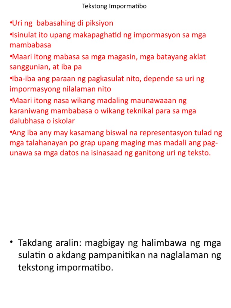 LAYUNIN NG TEKSTO Naglalarawan ba ito o kaya ay nagkukwento lang ng isang tiyak na karanasan o sitwasyon. Ibig sabihin ng akda. Ano ang ibig sabihin ng paksa.